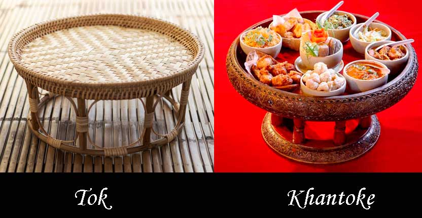 Le tok (โตก), pourrait être un de ces bandèges qui leur servent de table évoqué par La Loubère (15). Il s'agit d'un plateau rond, pourvu de pieds ou d'un socle, généralement en osier, en rotin ou en bois, qu'on trouve parmi d'autres objets de vannerie dans tous les marchés de Thaïlande. Le khantoke (ขันโตก), version siamoise du thali indien, (ou du plateau-télé occidental) est un plateau sur pied servant à présenter divers petits récipients contenant des aliments. Il est particulièrement représentatif de la cuisine du nord de la Thaïlande, du Laos et de l'Isan.